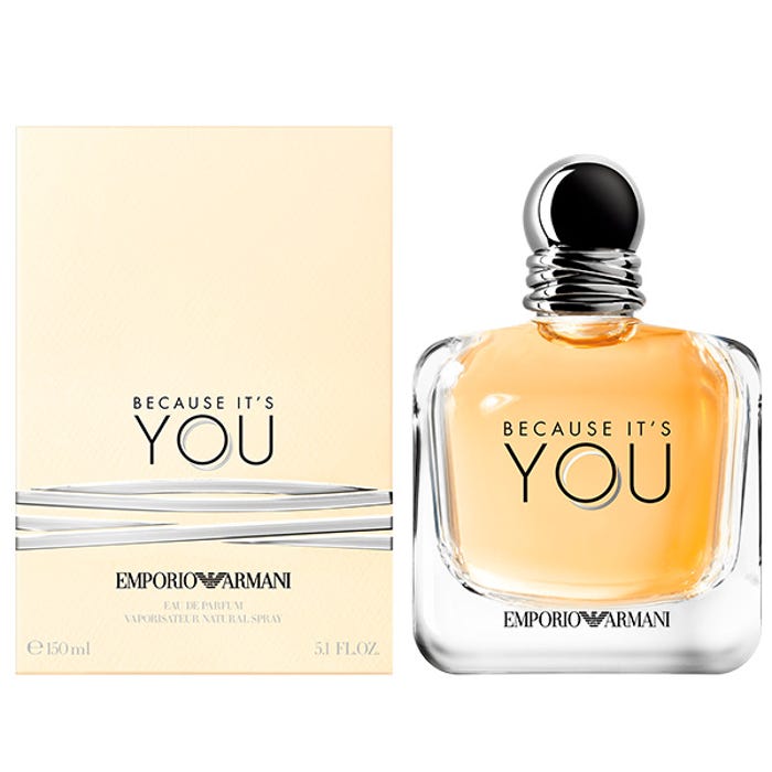 BECAUSE IT’S YOU La fuerza de un amor magnético. Una fragancia alegre, joven y magnética que simboliza la alianza que fortalece y equilibra. Bajo el lema #TOGETHERSTRONGER, encarna la fuerza que otorga el amor para tocar el cielo y realizar cosas extraordinarias juntos, presentada en un práctico frasco con vaporizador. Su composición es jovial y desenfadada, envolviendo a la mujer moderna en un manto de seguridad y feminidad inocente. Cargada de notas dulces, destaca por compartir con su contraparte masculina un ingrediente fundamental y seductor: la vainilla.